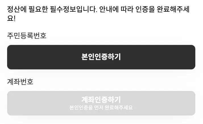 정산에 필요한 정보를 입력하기 위해 개인정보관리로 이동해주세요 (click!)