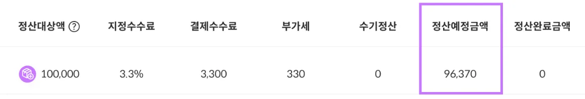 정산대상액 : 정산이 진행되어야 하는 주문건의 금액, 수수료 공제 이전