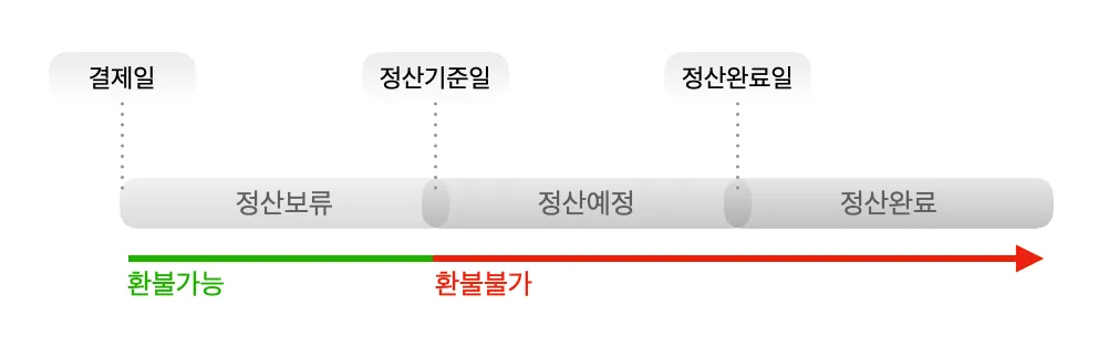 단, 고객이 장바구니에 담아 주문한 상품 중 반품진행중인 건이 있다면, 정산대상에서 제외됩니다. (반품환불이 완료되어야 정산이 진행됩니다.)