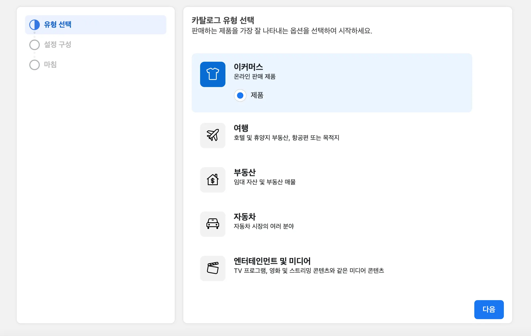 카탈로그 유형을 선택하시고, [다음] 버튼을 눌러주세요.